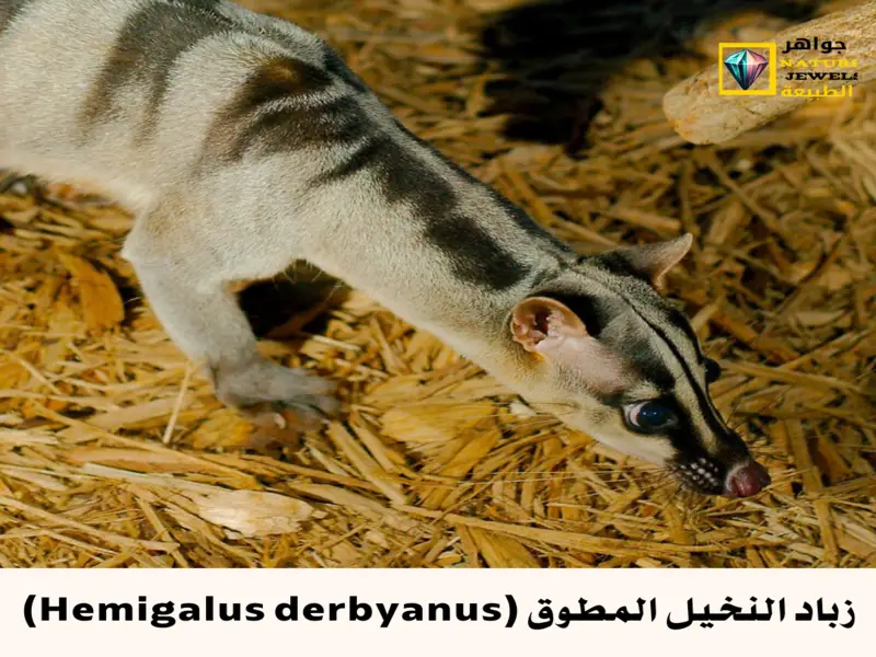 إنه زباد النخيل المخطط (Banded palm civet)، أحد أفراد عائلة الزباديات ورمز للتنوع البيولوجي والتكيف الرائع في عالم الطبيعة.